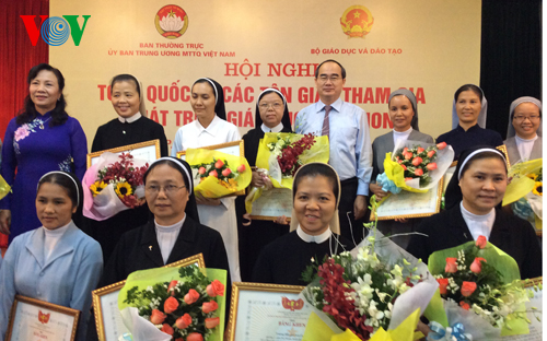 Nhân dịp này, Ủy ban Trung ương Mặt trận Tổ quốc Việt Nam tặng Bằng khen cho 26 tập thể trường mầm non tiêu biểu của các tôn giáo trong cả nước vì có thành tích xuất sắc tham gia phát triển giáo dục mầm non./.
