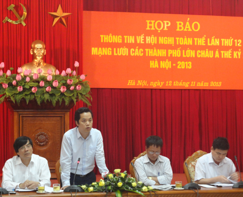 | Phó Giám đốc Sở Ngoại vụ Hà Nội Vũ Đăng Định thông tin tại buổi họp báo Ảnh: TH |
