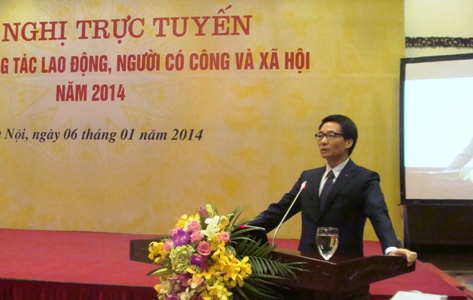Phó Thủ tướng lưu ý Bộ Lao động, Thương binh và Xã hội cần hướng công tác xuất khẩu lao động như một mũi nhọn trong giải quyết việc làm. Phó Thủ tướng Vũ Đức Đam nêu rõ năm 2014, ngành cần tập trung hoàn thành tốt các nhiệm vụ chăm lo đời sống người có công; bảo trợ xã hội; bảo vệ chăm sóc trẻ em, bình đẳng giới, phòng, chống ma túy, mại dâm./.