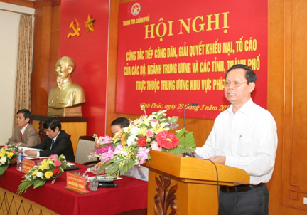 (VOV5)- Sáng nay, tại Vĩnh Phúc, Thanh tra Chính phủ tổ chức hội nghị bàn về công tác tiếp công dân, giải quyết khiếu nại tố cáo của các Bộ, ngành Trung ương và các tỉnh, thành phố khu vực phía Bắc.