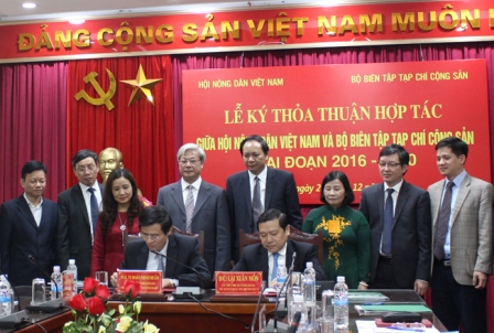 (VOV5) - Chiều 26/12, tại Hà Nội, Trung ương Hội Nông dân Việt Nam và Bộ Biên tập Tạp chí Cộng sản tổ chức lễ ký thỏa thuận hợp tác nghiên cứu khoa học giai đoạn 2016 - 2020.
