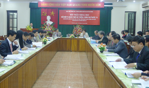 Gần 40 tham luận trình bày và gửi tới hội thảo tập trung làm sáng tỏ những luận điểm cơ bản về hệ thống chính trị và đổi mới hệ thống chính trị ở Việt Nam; đánh giá những thành tựu và những mặt hạn chế trong hoạt động của hệ thống chính trị ở Việt Nam trong quá trình đổi mới. Để đổi mới, hoàn thiện hệ thống chính trị ở Việt Nam, các đại biểu đề xuất các giải pháp: đổi mới phương phương thức lãnh đạo của Đảng đối với Nhà nước, Mặt trận Tổ quốc và các tổ chức chính trị- xã hội; xây dựng cơ chế giám sát của nhân dân đối với quyền lực Nhà nước; đổi mới, tăng cường giám sát quyền lực nhà nước; nâng cao vai trò phản biện xã hội của Mặt trận Tổ quốc; đẩy mạnh cải cách hành chính, tinh giản biên chế…