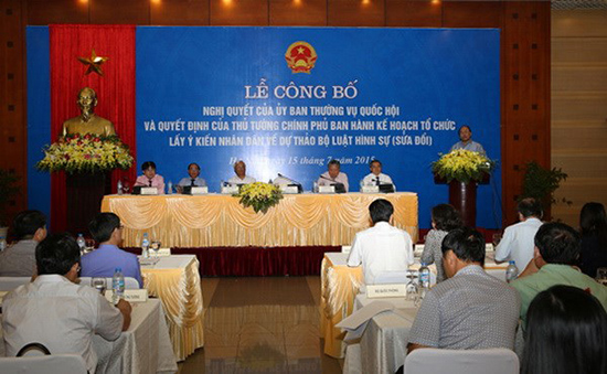 | Lễ công bố nghị quyết về việc tổ chức ý kiến nhân dân về dự thảo BLHS sửa đổi. Ảnh: Minh Hương |