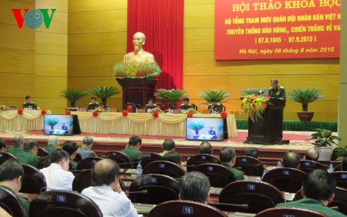 (VOV5)- Tại hội thảo, nhiều tham luận khẳng định và làm sâu sắc hơn về những thành tích, chiến công, bản chất cách mạng, truyền thống anh hùng của Bộ Tổng Tham mưu Quân đội nhân dân Việt Nam trong sự nghiệp xây dựng và bảo vệ Tổ quốc.
