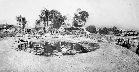 | Toàn cảnh đồn Nghĩa Lộ bị san phẳng trong chiến dịch Tây Bắc (1952) Ảnh: Tư liệu Bảo tàng Yên Bái |
