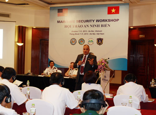 (VOV5) - Sáng 7/10, Cảnh sát biển Việt Nam, Bộ Quốc phòng phối hợp với Đại sứ quán Hoa Kỳ tại Hà Nội tổ chức Hội thảo Liên ngành An ninh biển năm 2013. Hội thảo nhằm thúc đẩy thông tin giữa các cơ quan có trách nhiệm đảm bảo an ninh trên biển, bao gồm chính sách biển, phương thức tác nghiệp, quy trình tác nghiệp chuẩn, chương trình huấn luyện về giám sát, quản lý biển.
