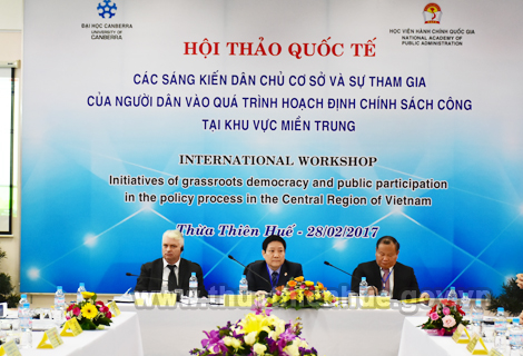 "Các sáng kiến dân chủ cơ sở và sự tham gia của người dân vào quá trình hoạt định chính sách công tại khu vực miền Trung" là chủ đề hội thảo quốc tế do Học viện Hành chính Quốc gia phối hợp với Đại học Canberra (Australia) tổ chức ngày 28/2, tại thành phố Huế.