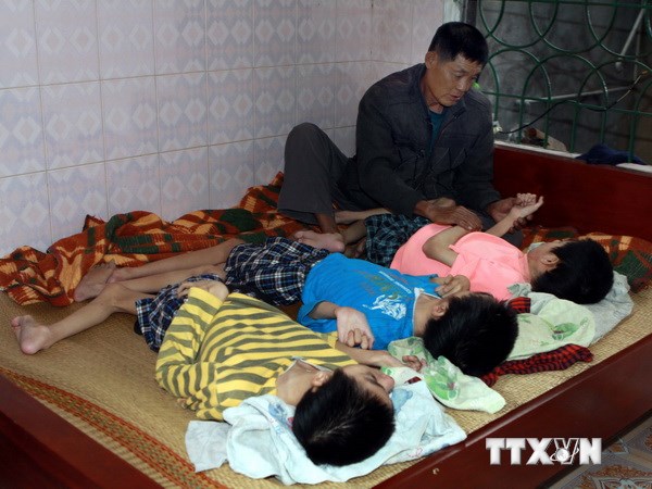 | Một gia đình ở Hải Phòng có bốn con bị nhiễm chất độc da cam. |