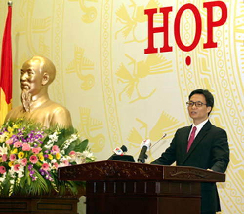 (VOV5) - Như tin đã đưa, hôm qua, Chính phủ đã họp phiên thường kỳ tháng 2. Ngay sau phiên họp, Bộ trưởng, Chủ nhiệm văn phòng Chính phủ Vũ Đức Đam chủ trì buổi họp báo nhằm thông báo kết quả phiên họp, tình hình kinh tế xã hội tháng 2 cũng như một số giải pháp điều hành của Chính phủ thời gian tới, đồng thời trả lời câu hỏi của các nhà báo về một số vấn đề mà dư luận đang hết sức quan tâm. Theo Bộ trưởng, Chủ nhiệm Văn phòng Chính phủ Vũ Đức Đam, kinh tế Việt Nam đã xuất hiện những dấu hiệu tích cực. Đó là, theo báo cáo mới nhất của Thống đốc Ngân hàng Nhà nước, tỷ lệ nợ xấu của toàn ngành ngân hàng hiện đã giảm từ hơn 8% xuống còn 6%, trong bối cảnh Công ty xử lý nợ xấu chưa ra đời. Chỉ số giá tiêu dùng (CPI) trong 2 tháng đầu năm là 2,59%, giảm so với cùng thời điểm những năm trước. Việt Nam đặt mục tiêu kép trong năm nay là vừa tăng trưởng vừa kiềm chế lạm phát. Để thực hiện mục tiêu đó, Chính phủ yêu cầu các cơ quan chức năng khác phải bám sát các mục tiêu để phối hợp điều hành. Đặc biêt, các cơ quan điều hành cũng phải tính tới việc “dàn đều” tín dụng trong 10 tháng còn lại, tránh dồn vào một thời điểm, gây áp lực lên lạm phát. Song song với vấn đề này, Bộ trưởng Vũ Đức Đam cũng cho biết Chính phủ sẽ có lộ trình để tiếp tục điều chỉnh lãi suất.