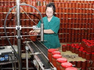 | Sản phẩm cà chua đóng hộp xuất khẩu của VIFOCO. (Ảnh: Trần Việt/TTXVN) |
