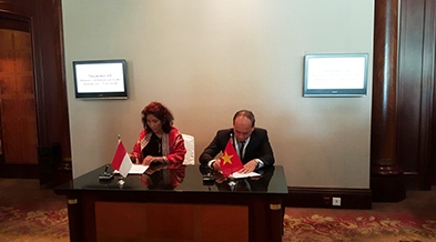 | Thứ trưởng Vũ Văn Tám và Bộ trưởng Hàng hải và Nghề cá Indonesia ký kết hợp tác (Ảnh: fistenet.gov.vn) |