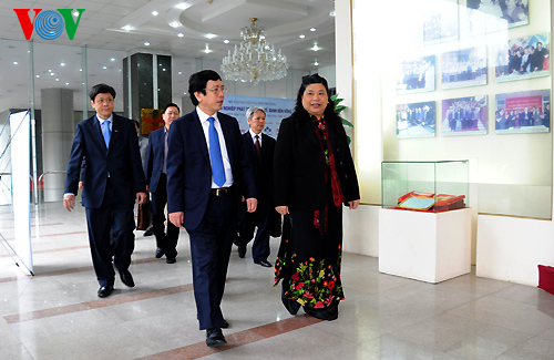 | Lãnh đạo VOV đón tiếp Phó Chủ tịch Quốc hội Tòng Thị Phóng đến thăm Đài. |