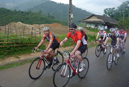| Các vận động viên tham gia gây quỹ qua cuộc diễu hành bằng xe đạp vòng quanh Việt Nam (Ảnh: vietnamnet.vn) |