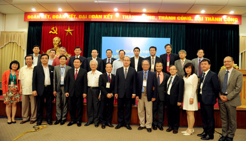| Chủ tịch Nguyễn Thiện Nhân chụp ảnh lưu niệm cùng các đại biểu.ảnh: Hoàng Long |
