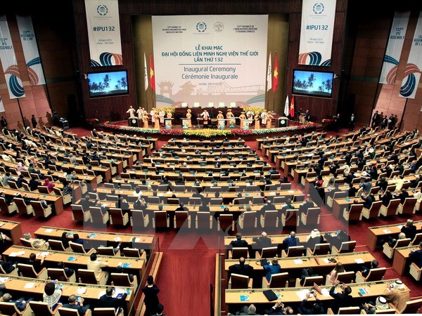 Phát biểu khai mạc Đại hội đồng IPU-132, Chủ tịch Quốc hội Nguyễn Sinh Hùng khẳng định: Quốc hội và nhân dân Việt Nam tự hào lần đầu tiên là nước chủ nhà đăng cai Diễn đàn quan trọng này. Chủ tịch Quốc hội Nguyễn Sinh Hùng nhấn mạnh: “Tại Kỳ họp của Đại hội đồng kỳ này chúng ta có trách nhiệm trao đổi kỹ về vai trò nhiệm vụ và những biện pháp của các Quốc hội, Nghị viện để thực sự biến những lời nói thành hành động thực hiện những mục tiêu pháp triển bền vững và chúng ta sẽ đưa ra thông điệp thể hiện sự cam kết mạnh mẽ của cộng đông các Nghị viện trên thế giới trong việc thực hiện có hiệu quả có hiệu quả các mục tiêu phát triển bền vững”.