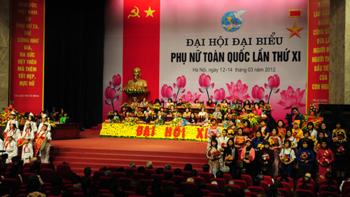 (VOV5)- Gần 1000 đại biểu đại diện cho hơn 15 triệu hội viên phụ nữ trên cả nước tham dự Đại hội đại biểu toàn quốc Hội Liên hiệp phụ nữ Việt Nam khóa XI, khai mạc tại Hà Nội. Tham dự đại hội có Tổng bí thư Nguyễn Phú Trọng, Thủ tướng Nguyễn Tấn Dũng, Chủ tịch Quốc hội Nguyễn Sinh Hùng. Với chủ đề “Đoàn kết - Sáng tạo - Hội nhập - Phát triển”, Đại hội lần này là sự kiện quan trọng, không chỉ đề ra phương hướng hoạt động giúp các hội viên thoát nghèo, vươn lên làm kinh tế giỏi, xây dựng đội ngũ nữ trí thức trong thời gian tới mà còn tạo tiền đề để phụ nữ Việt Nam tiếp tục phát huy năng lực, đóng góp nhiều hơn cho công cuộc xây dựng và phát triển đất nước.
