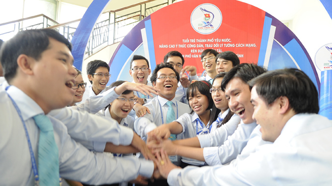 | Các đại biểu đến từ trường ĐH dự Đại hội đại biểu Đoàn TNCS Hồ Chí Minh TP.HCM lần IX, nhiệm kỳ 2012 - 2017 - Ảnh: Minh Đức |
