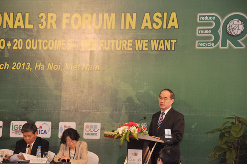 Phát biểu khai mạc, Phó Thủ tướng Nguyễn Thiện Nhân mong muốn thông qua Diễn đàn góp phần thúc đẩy đối thoại chính sách cấp cao giữa các bên liên quan để giải quyết về nguyên tắc mối liên kết giữa 3R và những vấn đề khác như quản lý tổng hợp chất thải rắn, sản xuất-tiêu dùng bền vững, tuần hoàn vật chất hợp lý, là cơ hội mới để Việt Nam chia sẻ cũng như học tập kinh nghiệm, tăng cường hợp tác với các nước trong lĩnh vực quản lý chất thải 3R nói chung, bảo vệ môi trường, sử dụng hiệu quả năng lượng và tài nguyên, ứng phó với biến đổi khí hậu.