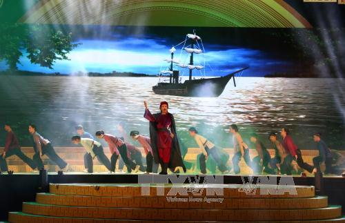 | Tiết mục “Lửa hồng Nhật Tảo” ca ngợi khí phách kiên cường của người anh hùng Nguyễn Trung Trực. Ảnh: TTXVN |