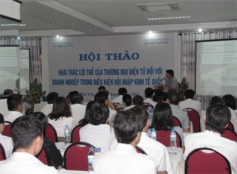 (VOV5) - Cục Thương mại điện tử và công nghệ thông tin - Bộ Công thương vừa phối hợp với Sở Công thương tỉnh Phú Yên tổ chức Hội thảo "Khai thác lợi thế thương mại điện tử đối với doanh nghiệp trong điều kiện hội nhập kinh tế quốc tế". Các đại biểu đánh giá hiện Việt Nam rất có tiềm năng trong khai thác thương mại điện tử trong sản xuất kinh doanh. Tuy nhiên, việc ứng dụng thông tin điện tử hiện đang gặp rào cản lớn là hệ thống kênh phân phối chưa đủ mạnh và chưa chuyên nghiệp. Bên cạnh đó, các doanh nghiệp cũng chưa thực sự tạo được lòng tin của người tiêu dùng khi bán hàng qua mạng. Ông Nguyễn Thế Quang, Phó Cục trưởng Cục Thương mại điện tử và Công nghệ thông tin- Bộ Công thương cho biết“Chúng tôi sẽ cho ra mắt vncharm, cổng thương mại điện tử quốc gia. Đồng thời nâng cấp phần ekip, đó là tính năng mới rất thuận tiện cho doanh nghiệp, có thể mở gian hàng hoặc là mở website hoàn toàn miễn phí, hoặc phí rất thấp cho các doanh nghiệp, cao nhất là khoảng 499.000đ/tháng. Các công cụ đưa trên ekip đã được tích hợp sẵn, từ thanh toán cho đến quảng cáo. Như vậy việc tham gia vào ekip này sẽ giảm chi phí một cách tối đa cho các doanh nghiệp”.