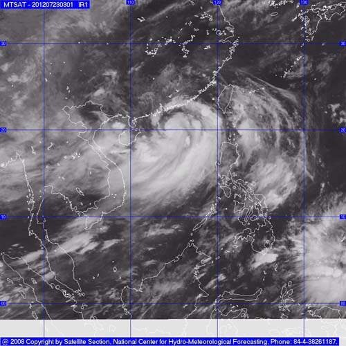 | Ảnh mây vệ tinh cơn bão số 4 - Nguồn: Trung tâm dự báo khí tượng thủy văn T.Ư |