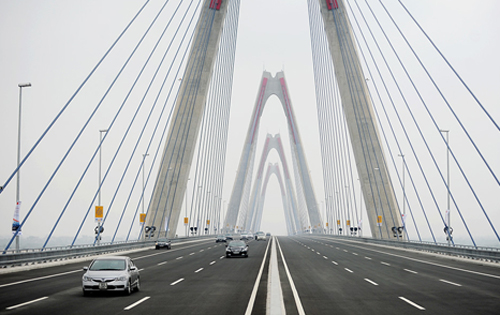 | Cầu Nhật Tân giúp rút ngắn quãng đường từ trung tâm Hà Nội tới sân bay Nội Bài (Ảnh: vnexpress.net) |