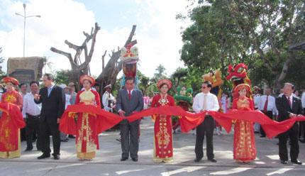 | Các đại biểu cắt băng khánh thành Khu tưởng niệm cố Thủ tướng Võ Văn Kiệt. |