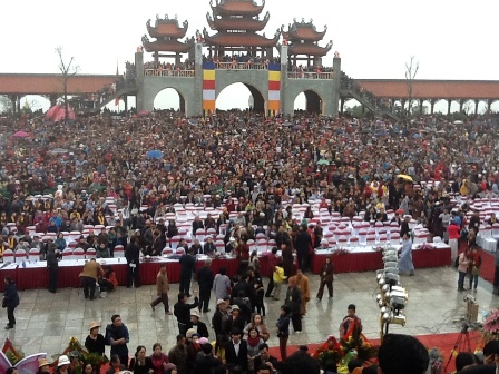 | Đông đảo du khách đến tham dự Lễ khánh thành Chùa Ba Vàng |