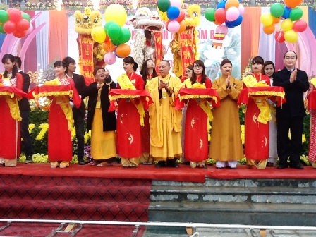 | Các đại biểu cắt băng khánh thành Chùa Ba Vàng |