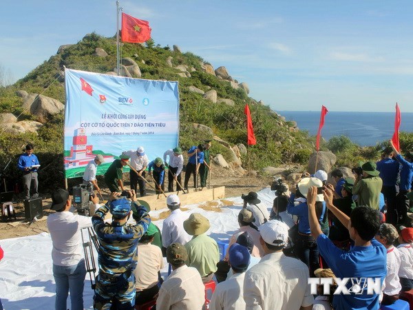 Cột cờ Cù Lao Xanh trong lễ khởi công. (Ảnh: Ly Kha/TTXVN)