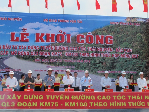 (VOV5) - Sáng 07/09, tại xã Thanh Bình, huyện Chợ Mới, tỉnh Bắc Kạn, Thủ tướng Nguyễn Tấn Dũng phát lệnh khởi công dự án đầu tư xây dựng tuyến đường cao tốc Thái Nguyên - Bắc Kạn và nâng cấp, mở rộng Quốc lộ 3 theo hình thức hợp đồng xây dựng - kinh doanh - chuyển giao (BOT).