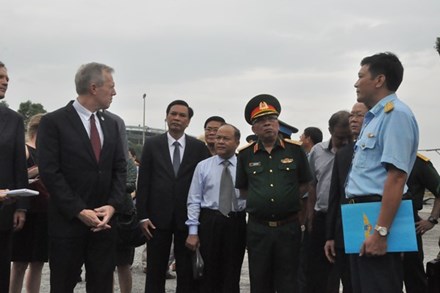 | hượng tướng Nguyễn Chí Vịnh, Thứ trưởng Bộ Quốc phòng Việt Nam cùng Đại sứ Hoa Kỳ Ted Osius cùng tham quan hiện trường xử lý ô nhiễm dioxin tại sân bay Đà Nẵng sáng 18.10 (Ảnh: Báo Lao động) |