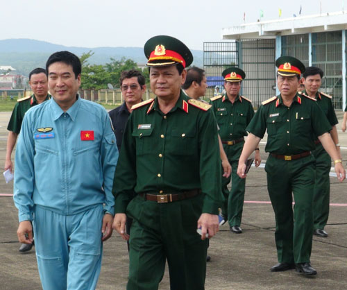 | Thượng tướng Nguyễn Thành Cung tại Cảng hàng không Điện Biên Phủ (Ảnh:mod.gov.vn) |