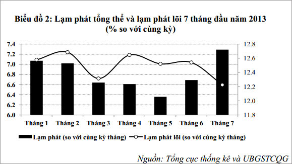 Theo đánh giá của Ủy ban Giám sát tài chính quốc gia, dù lạm phát tổng thể có tốc độ tăng cao hơn so với tháng trước cũng như so với cùng kỳ nhưng nhìn chung lạm phát 7 tháng đầu năm vẫn ở mức thấp (tăng 2,68% so với đầu năm) và là mức thấp trong nhiều năm trở lại đây.