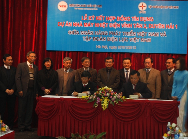 (VOV5) - Chiều 7/1, tại Hà Nội, Ngân hàng Phát triển Việt Nam (VDB) và Tập đoàn Điện lực Việt Nam (EVN) ký kết hợp đồng tín dụng Dự án đầu tư xây dựng công trình Nhiệt điện Vĩnh Tân 2 và Nhiệt điện Duyên Hải 1 bằng nguồn vốn tín dụng đầu tư của Nhà nước với số vốn cho vay 2.500 tỷ đồng.
