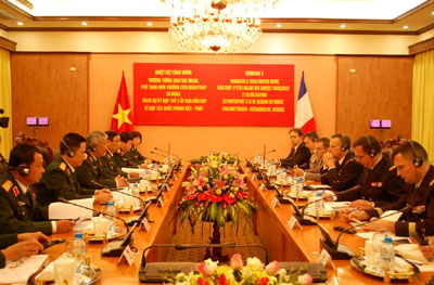 (VOV5) - Ngày 9/1/2013, tại Hà Nội, kỳ họp thứ 3 Ủy ban hỗn hợp về hợp tác quốc phòng Việt - Pháp được tổ chức. Thượng tướng Nguyễn Chí Vịnh, Thứ trưởng Bộ Quốc phòng Việt Nam và Thượng tướng Gratien Maire, Phó Tham mưu trưởng Liên quân Pháp đồng chủ trì.