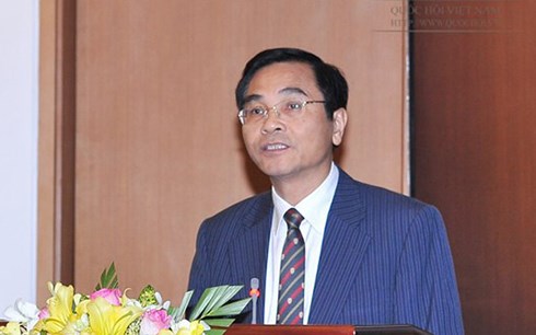Phó Tổng Thư ký Quốc hội Lê Bộ Lĩnh trình bày Nghị quyết về phân bổ ngân sách trung ương năm 2018. Ảnh: VOV.VN |
