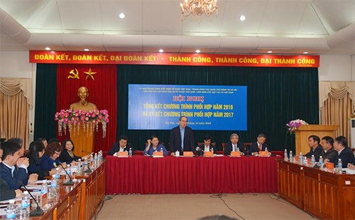 Sáng 19/12, tại Hà Nội, Ủy ban Trung ương Mặt trận Tổ quốc Việt Nam, Trung ương các đoàn thể chính trị - xã hội, Liên hiệp các hội khoa học và kỹ thuật Việt Nam, Liên minh Hợp tác xã Việt Nam tổ chức hội nghị tổng kết chương trình phối hợp năm 2016 và ký kết chương trình phối hợp năm 2017.