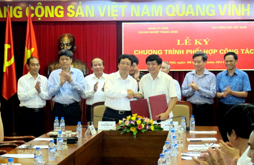 (VOV5) - Chiều 06/08, tại Hà Nội, Đảng ủy Khối doanh nghiệp Trung ương và Đài TNVN tổ chức lễ ký chương trình phối hợp công tác giai đoạn 2014-2019.