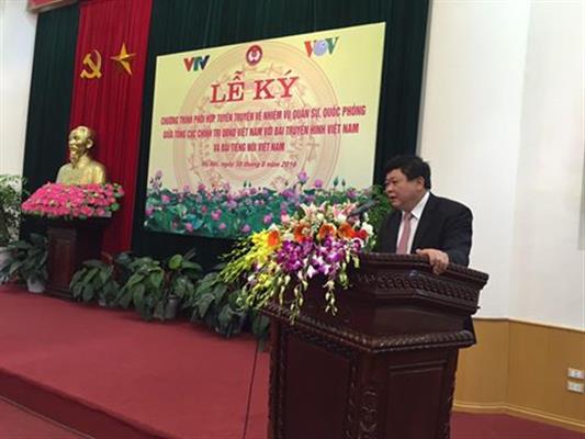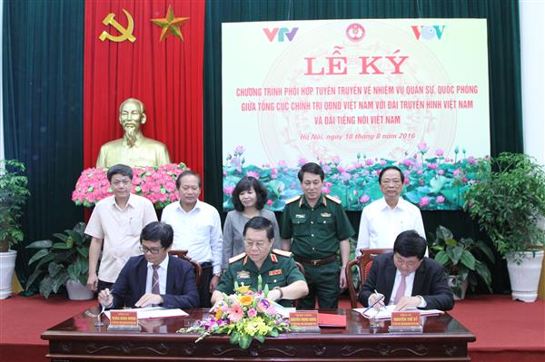 (VOV5) - Sáng nay (18/08), Tổng cục Chính trị - Quân đội Nhân dân Việt Nam và Đài Tiếng nói Việt Nam, Đài Truyền hình Việt Nam ký kết chương trình phối hợp tuyên truyền về nhiệm vụ quân sự, quốc phòng giữa 3 cơ quan.