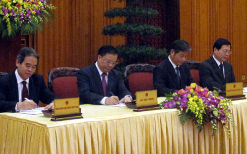 Thủ tướng Nguyễn Tấn Dũng và các Phó Thủ tướng Nguyễn Xuân Phúc, Hoàng Trung Hải, Vũ Văn Ninh, Vũ Đức Đam, Phạm Bình Minh chứng kiến lễ ký này. Ngày 6/8/2013, Thủ tướng Chính phủ ban hành Quyết định phê duyệt Đề án cải cách cơ chế phối hợp, quản lý và điều hành kinh tế vĩ mô, trong đó giao Bộ Kế hoạch và Đầu tư chủ trì phối hợp với Bộ Tài chính, Bộ Công Thương và Ngân hàng Nhà nước xây dựng ban hành và tổ chức thực hiện quy chế trong quản lý điều hành trong kinh tế vĩ mô. Đây là căn cứ quan trọng để các Bộ phối hợp triển khai các nhiệm vụ được giao trong việc quản lý điều hành lĩnh vực tài khóa, tiền tệ, đầu tư, thương mại, giá cả.