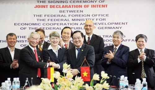 (VOV5) - Sáng 18/3, tại Hà Nội, Bộ Giáo dục và Đào tạo, Bộ Lao động - Thương binh và Xã hội Việt Nam ký Tuyên bố hợp tác với Bộ Ngoại giao, Bộ Kinh tế và Hợp tác phát triển, Cộng hòa liên bang Đức về phát triển, đào tạo nguồn nhân lực.