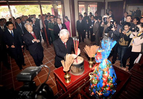 Trước đó, Tổng Bí thư Nguyễn Phú Trọng cùng đoàn công tác đã dâng hương tại nhà Khu lưu niệm Thủ tướng Phạm Văn Đồng.