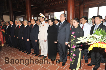 Trước khi diễn ra lễ mít tinh, Tổng Bí thư Nguyễn Phú Trọng dẫn đầu đoàn đại biểu lãnh đạo Đảng, Nhà nước đã tới dâng hương, dâng hoa tưởng nhớ Tổng Bí thư Lê Hồng Phong tại nhà lưu niệm ở xã Hưng Thông, huyện Hưng Nguyên, tỉnh Nghệ An.