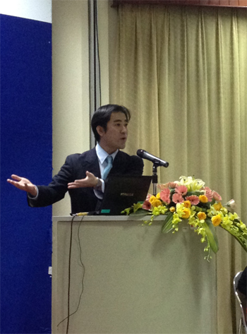 Diễn giả chính của Hội thảo là ông Nakamura Yoshinobu, ký giả chuyên trang xã hội của Tòa soạn báo Asahi, người đã trực tiếp đưa tin tại vùng xảy ra động đất, sóng thần 2 năm về trước.