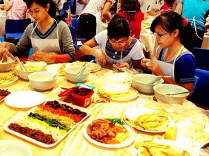 | Sinh viên Việt Nam đang làm các món ăn Hàn Quốc trong khuôn khổ “Tuần lễ Việt Nam-Hàn Quốc” (Ảnh: Thanh Hà/TTXVN) |