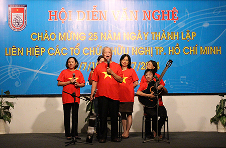 | Hội diễn văn nghệ chào mừng 25 năm thành lập Liên hiệp. Ảnh: hufo.hochiminhcity.gov.vn |