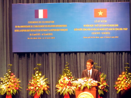 (VOV5) - Sáng nay, thành phố Hồ Chí Minh tổ chức lễ kỷ niệm 40 năm ngày thiết lập quan hệ ngoại giao Việt Nam – Pháp (12/4/1973 – 12/4/2013).