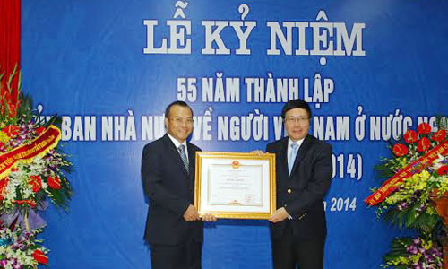 Phó Thủ tướng Phạm Bình Minh nêu rõ nhiệm vụ trọng tâm của Ủy ban Nhà nước về người Việt Nam ở nước ngoài trong thời gian tới. Đó là tiếp tục phát huy tinh thần đoàn kết, phát huy sức mạnh tập thể, xây dựng đơn vị trong sạch vững mạnh; phối hợp với các cơ quan hữu quan tăng cường công tác vận động người Việt Nam ở nước ngoài hướng về đất nước, góp phần vào sự nghiệp xây dựng và bảo vệ Tổ quốc. Tại lễ kỷ niệm, Phó Thủ tướng, Bộ trưởng Ngoại giao Phạm Bình Minh đã trao tặng Bằng khen của Thủ tướng Chính phủ cho Ủy ban Nhà nước về người Việt Nam ở nước ngoài.
