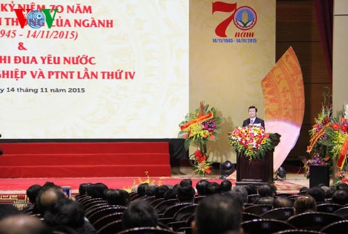 | Chủ tịch nước Trương Tấn Sang dự và phts biểu chỉ đạo tại lễ kỷ niệm 70 năm ngày truyền thống ngành Nông nghiệp và Phát triển nông thôn (Ảnh: vov.vn) |